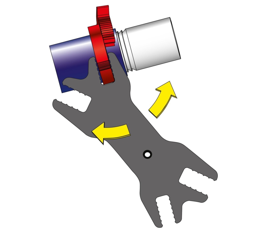 *При максимальном смыкании замка хомута, для его разъединения, возможно, понадобиться инструмент в виде отвертки, чтоб сместить центральный зубчатый шток по отношению к зубчатому пазу в сторону.